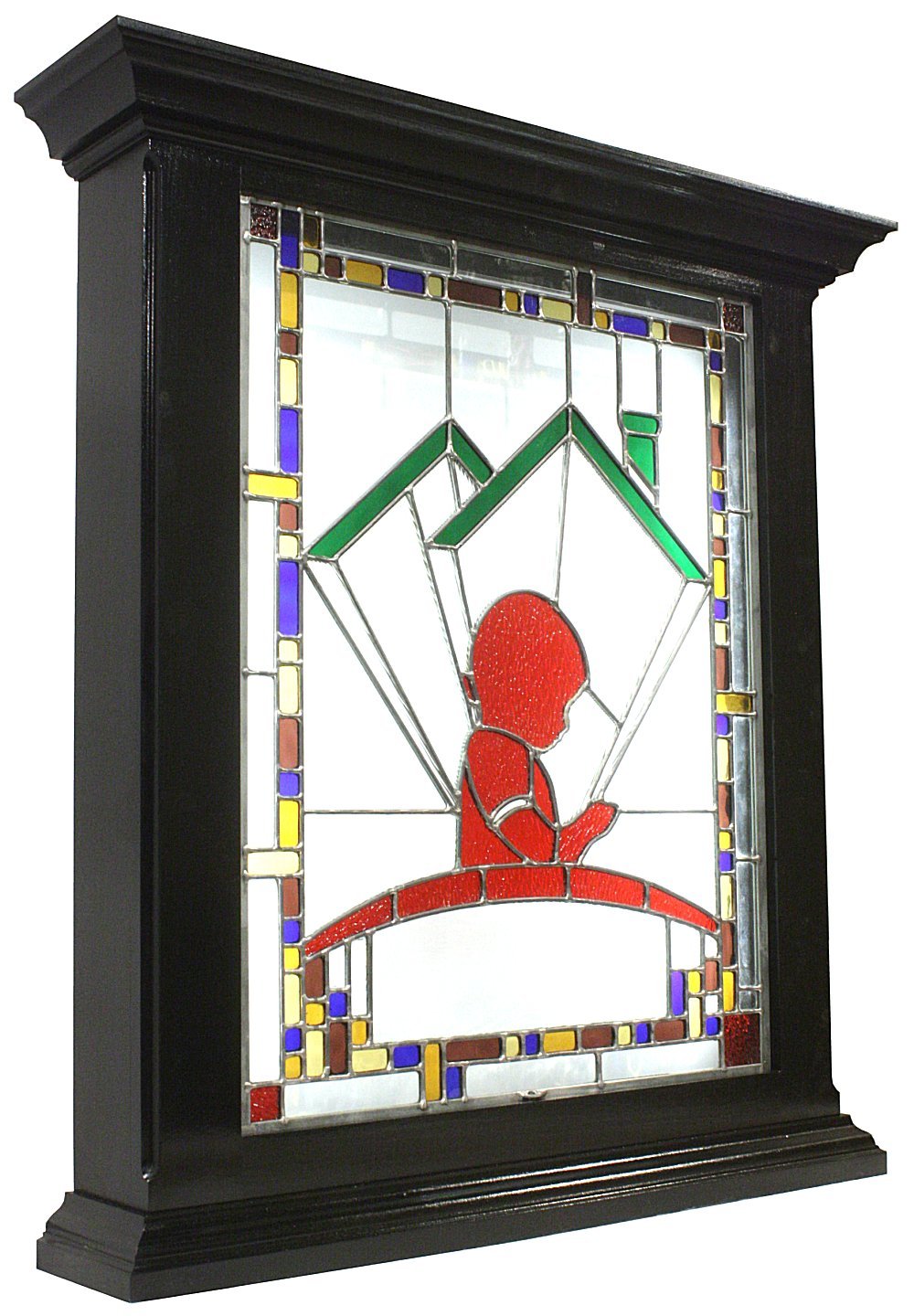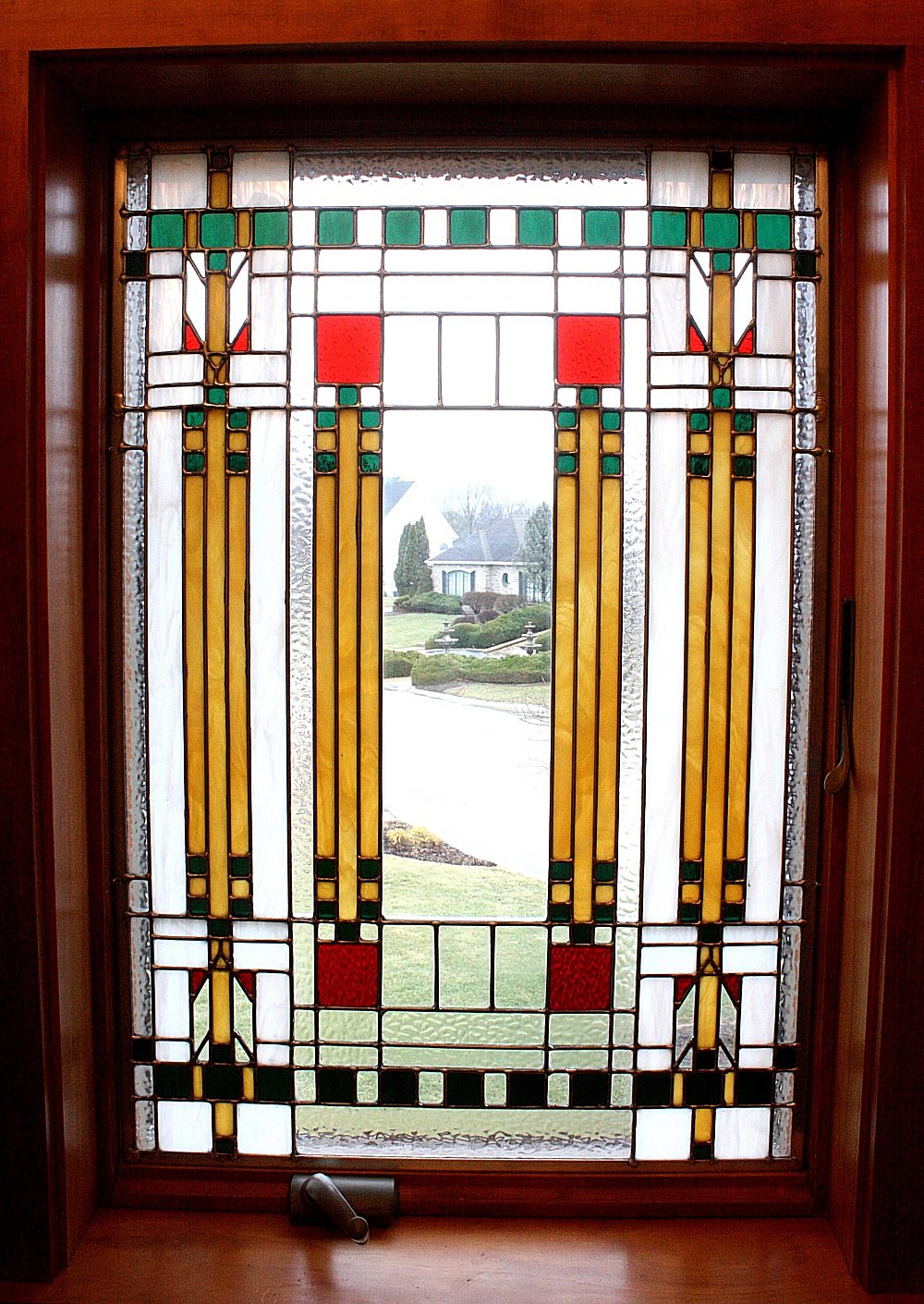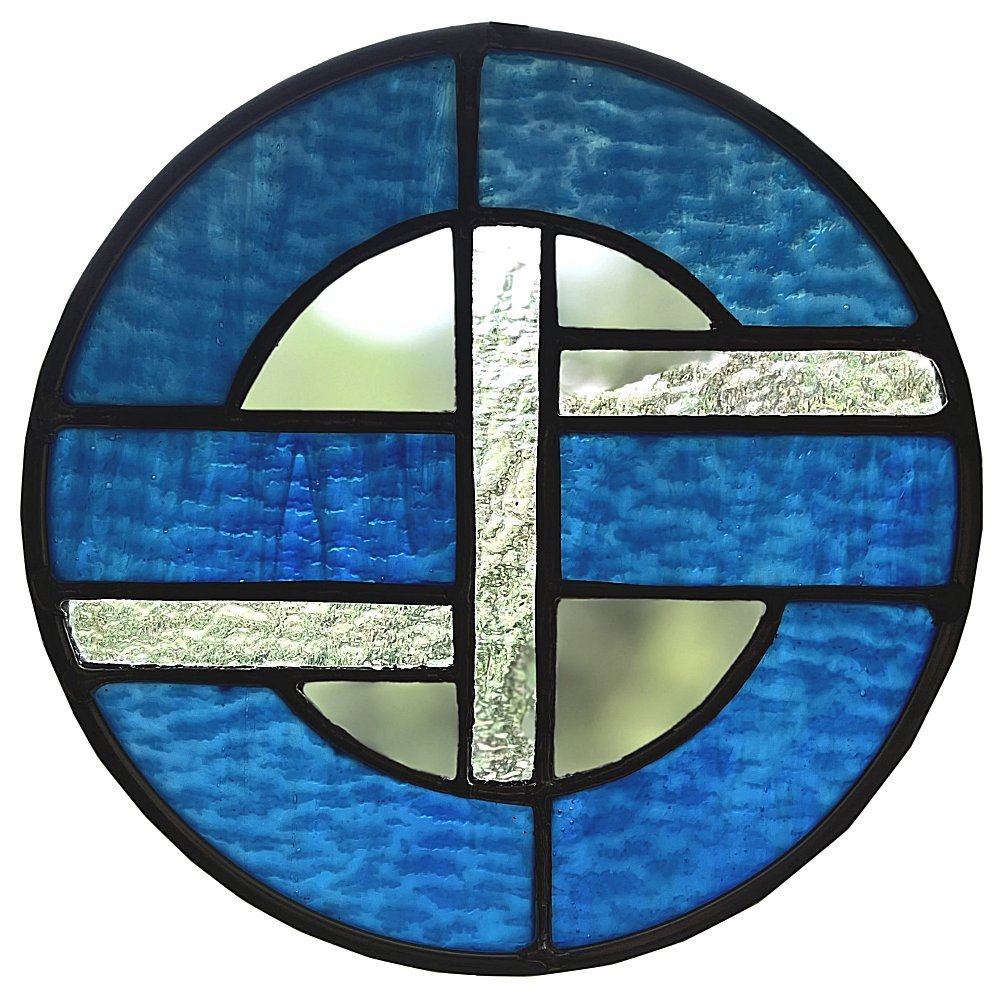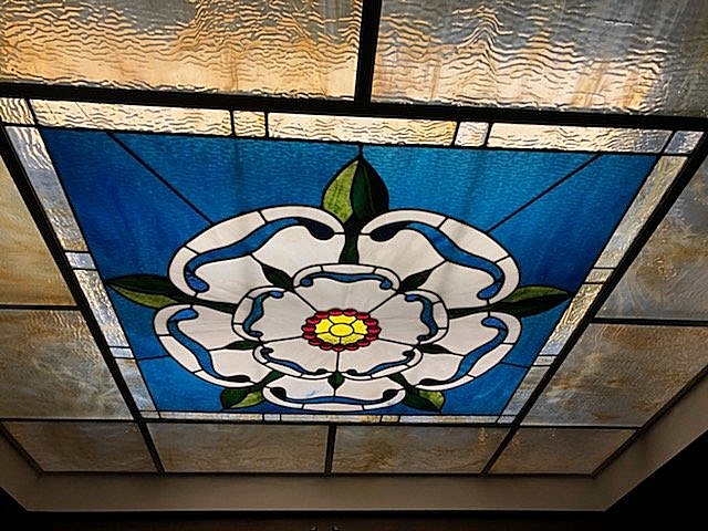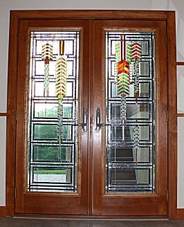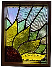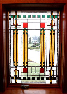 the reception area or the corner office. Stained glass is eye