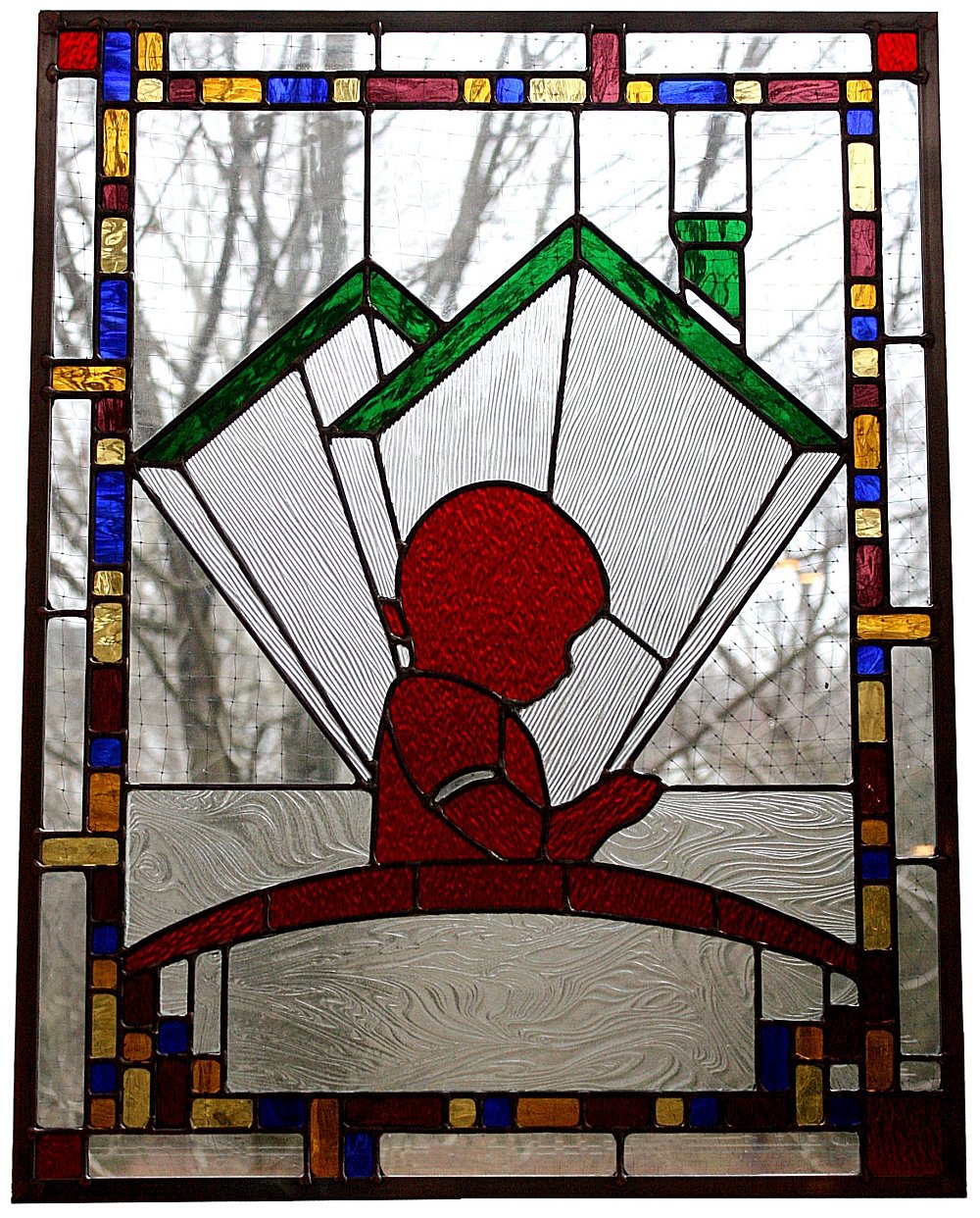 This stained glass panel was blown out of the frame